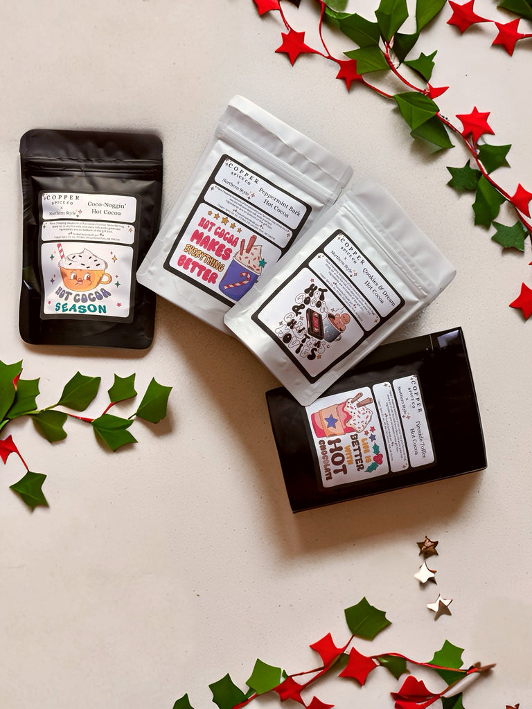 We have 4 different caesar rim salts, 2 sugar based rimmers and 2 salt based rimmers for all different types of cocktails. The perfect gift for the mixologist in your life!